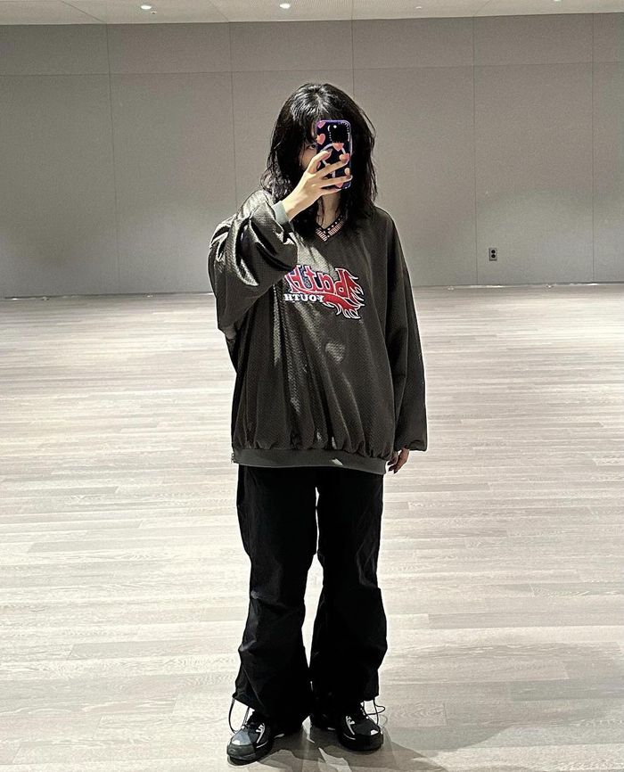 슬기는 힙한 무드와 더불어 특유의 중성적인 느낌까지 한껏 드러내며 블록코어 룩을 완성시켰는데, 박시한 티셔츠와 팬츠 덕분에 착용감이 굉장히 편해 보인다. 또한 블록코어 룩은 기본적으로 통이 넓고 오버핏인 경우가 많아 체형을 보완하기에도 좋다는 장점이 있다.