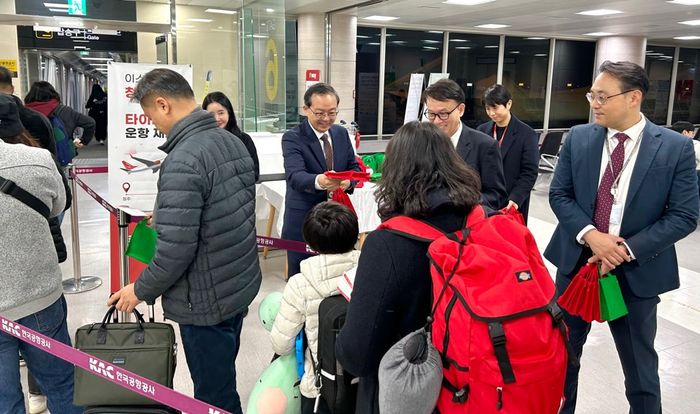 이날 청주-타이베이(타오위안공항) 취항 기념식을 진행하고 첫 편인 ZE781 탑승객들에게 기념 선물을 나눠주는 시간을 가졌다.