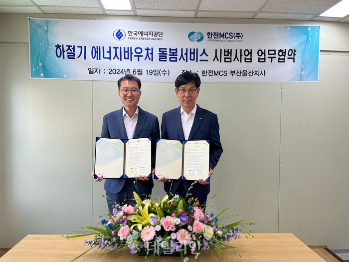 한국에너지공단은 19일 한전MCS 부산울산지사에서 한전MCS와 '하절기 에너지바우처 돌봄서비스 시범사업 업무협약'을 체결했다.