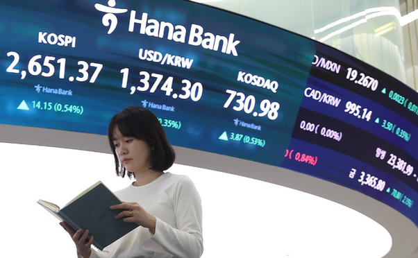 28일 서울 중구 하나은행 딜링룸 현황판에 코스피·코스닥 지수 등이 표시돼 있다. ⓒ연합뉴스