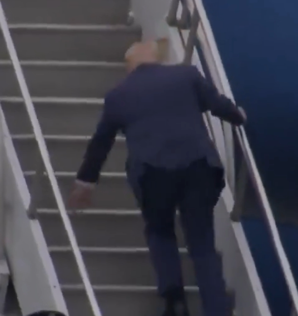 도널드 트럼프 미국 대통령이 에어포스원에 오르다 계단에서 비틀거리는 장면이 포착됐다.