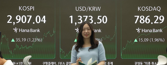 11일 한국거래소에 따르면 코스피지수는 전 거래일 대비 35.19포인트(1.23%) 오른 2907.04에 거래를 마쳤다. 지수가 2900선에 장을 마감한 것은 지난 2022년 1월 14일(2921.92) 이후 약 3년 5개월 만이다.