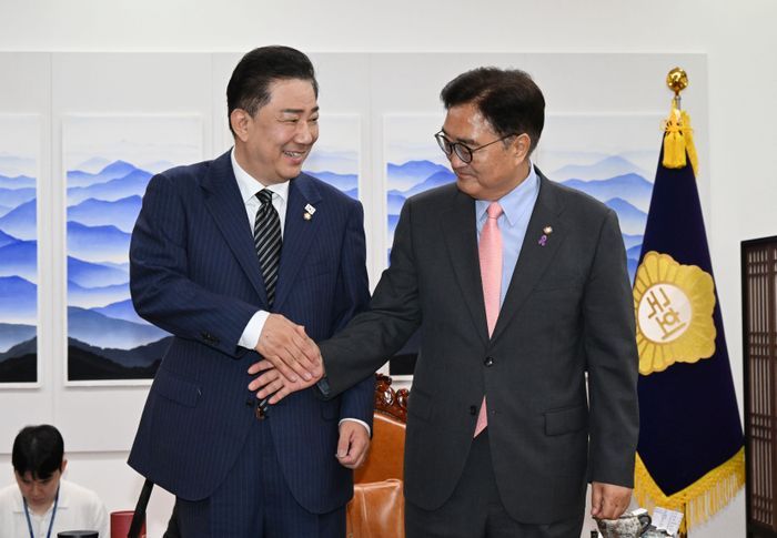 김병기 민주당 대표 직무대행 겸 원내대표는 16일 국회 의장접견실에서 우 의장을 예방해 공석인 상임위원장 선임을 위한 본회의를 오는 19일 열어줄 것을 요청했다.