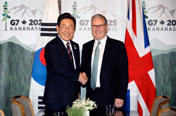 이 대통령은 이어 키어 스타머 영국 총리와 정상회담을 가졌다. 스타머 총리는 이 대통령에게 당선 축하 인사를 건네면서 한영 관계에 대해 "이미 강력한 파트너 관계를 구축하고, 이를 더욱더 강화해 나가기를 희망한다"고 말했다.