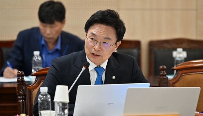 정진욱 더불어민주당 의원이 지난 달 14일 오전 전남 나주시 한국전력공사 본사에서 열린 산업통산자원중소벤처기업위원회 국정감사에 참여해 질문하고 있다. ⓒ뉴시스