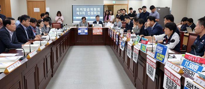 최저임금위원회(최임위)는 3일 오후 정부세종청사에서 제9차 전원회의를 열고 노사로부터 6차 수정안을 제출받았다.