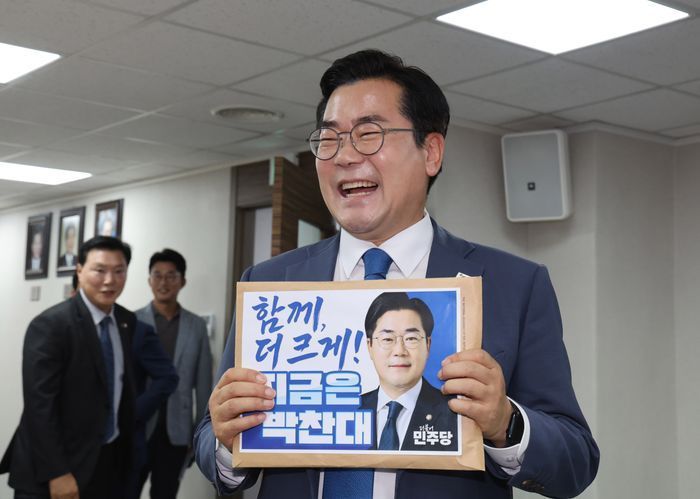 박 의원은 "(나는) 원내대표 시절 단 한 번의 실수 없이, 당의 분열 없이 탄핵 정국을 승리로 이끌 수 있었다"며 "이재명정부 집권 1년 차 당대표의 임무는 단호하고 신속하게 개혁을 완수하고, 민생 경제 성과로 국민에게 지지받는 이재명정부가 되도록 튼튼히 뒷받침하는 것"이라고 했다.