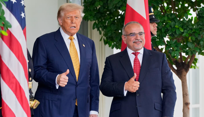 도널드 트럼프(왼쪽) 미국 대통령이 16일(현지시간) 워싱턴DC 백악관에서 바레인의 왕세자인 살만 빈 하마드 알 칼리파 총리와 만나고 있다. ⓒAP/뉴시스