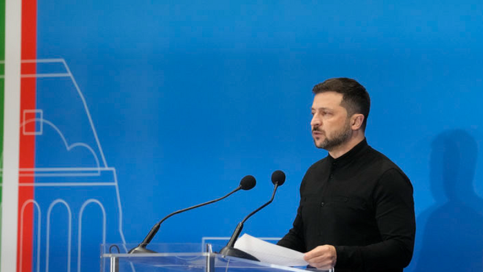 볼로디미르 젤렌스키 우크라이나 대통령이 지난 10일 이탈리아 로마에서 기자회견을 하고 있다. ⓒAP/뉴시스