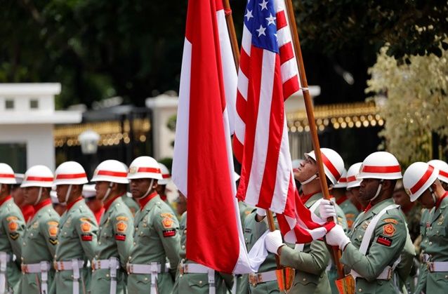 2022년 11월 인도네시아 자카르타에서 인도네시아군이 자국 국기와 미국 국기를 들고 있다. ⓒ 로이터/연합뉴스