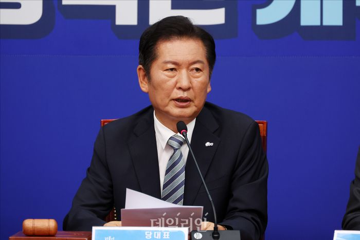 정청래 신임 더불어민주당 당대표가 4일 오전 국회에서 열린 최고위원회의에서 모두발언을 하고 있다. ⓒ데일리안 홍금표 기자
