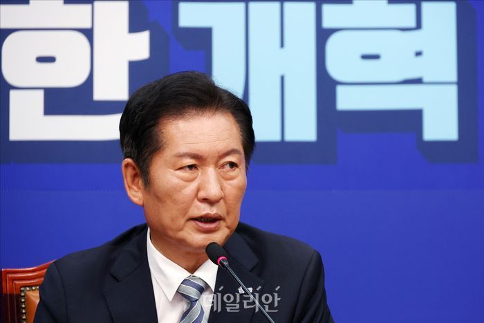 정청래 더불어민주당 대표가 4일 오전 국회에서 열린 민주당 최고위원회의에서 모두발언을 하고 있다. ⓒ데일리안 홍금표 기자