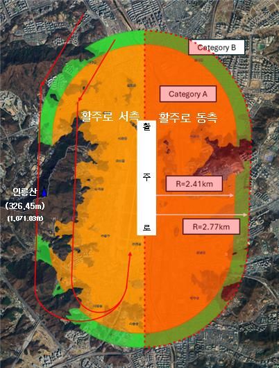 선회접근경로를 활주로 동측에서 서측(청계산)으로 변경한 안. ⓒ성남시 제공