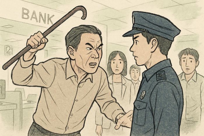 당시 A씨는 '왜 카드를 발급해 주지 않느냐'며 은행원에 행패를 부렸고, 신고를 받고 출동한 경찰관도 지팡이로 폭행한 것으로 조사됐다.
