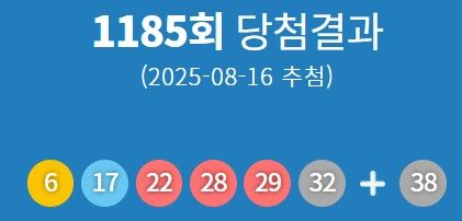 9일 동행복권은 제1185회 로또 당첨번호가 '6·17·22·28·29·32'번이라고 밝혔다. 보너스 번호는 38번이다.