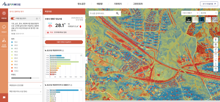 경기도는 ‘경기기후플랫폼’에서 지역별 폭염·산사태 등급과 호우 대피시설 등을 지도로 한 눈에 확인할 수 있다고 17일 밝혔다.