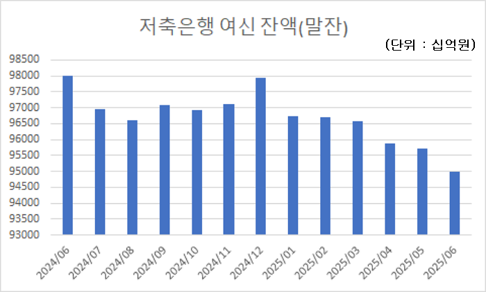 저축은행 대출 잔액이 95조원 아래로 떨어지며 서민금융 최전선이 흔들리고 있다. 지난해 12월 이후 7개월 연속 감소세를 보이고 있다.