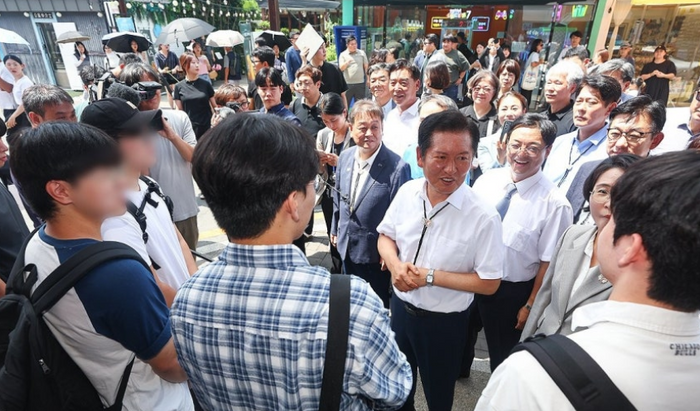 정 대표는 회의를 마친 직후 경주 민생 현장을 살피기 위해 황리단길을 찾았다. 법사위원장 시절 활약으로 대중적 인지도가 높은 만큼 정 대표 주변에는 삽시간에 많은 인파가 몰렸다.