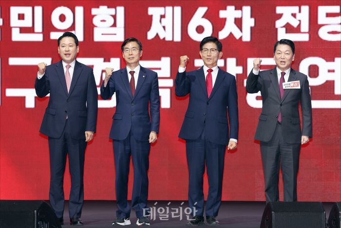 이처럼 한 계파 안에 두 후보씩 포함되다보니 메시지나 행동이 중첩되는 현상이 발생했고, 결국 후보들 간의 선명성 경쟁이 격화되는 모습이 연출됐다. 특히 장동혁 후보와 조경태 후보는 극단을 달리며 서로를 향해 '탈당'까지 압박하는 메시지를 꺼내들었다.