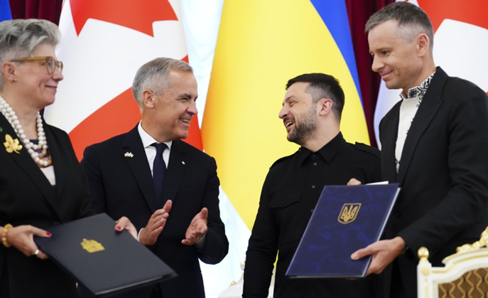 한편 이날 키이우를 방문한 마크 카니 캐나다 총리는 지난 6월 약속한 20억 캐나다달러(약 2조원) 중 절반은 드론과 장갑차, 탄약 지원으로 이루어진다고 말했다. 두 사람은 드론 공동 생산에 합의했고 수력발전, 소형 원자로, 석유 등 에너지 부분에서도 협력할 것이라고 밝혔다.