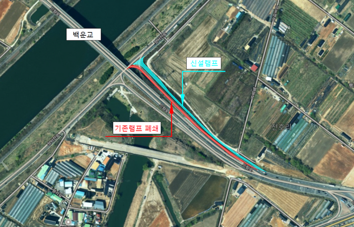 이번 신설램프 설치에 따라 다음 달 2일부터 백운교 하부 경인아라뱃길 신설(변경) 진입램프 380m에 대해 통행속도는 30km/hr 이하로 제한되며 교통전환은 영구적으로 시행된다.