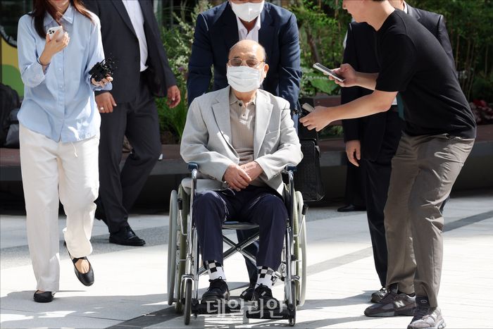 이봉관 서희건설 회장이 2일 오전 서울 종로구 김건희 특검팀(민중기 특별검사) 사무실로 소환조사에 출석하고 있다.