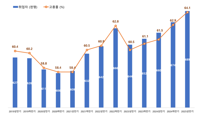 고용률 64.1%, 전년 동기보다 2.6%P 상승