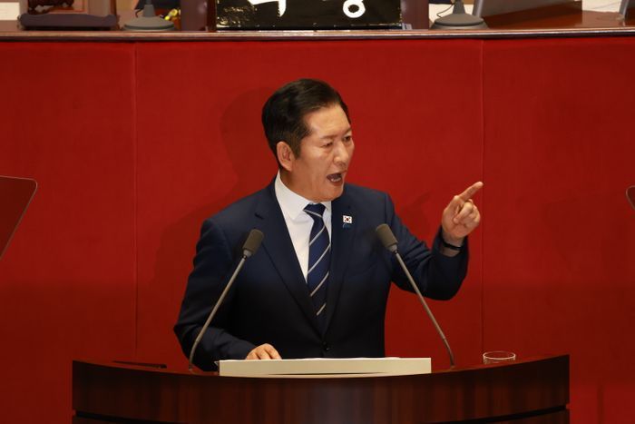 정청래 대표는 9일 이재명 정부 첫 정기국회 교섭단체 대표연설에서 "내란 청산은 정치 보복이 아니다. 권력을 사유화하고 분단을 악용하고, 정의의 가면 뒤에서 저질렀던 악행을 청산하자는 것"이라며 이 같이 말했다.