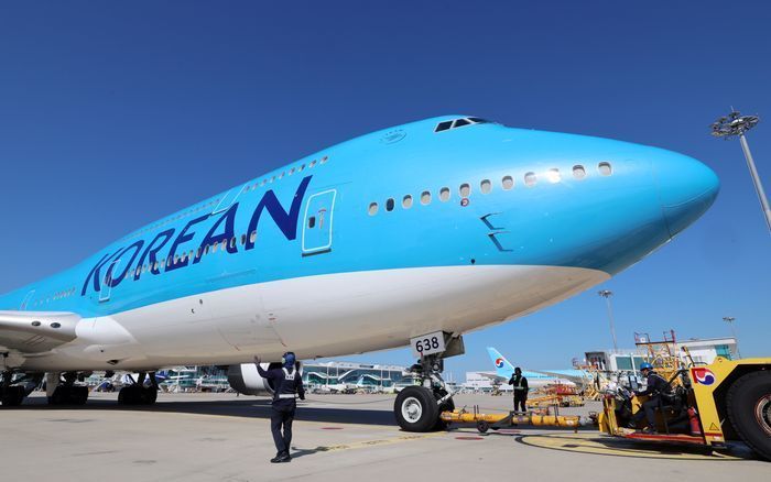 미국 조지아주 현대차그룹-LG에너지솔루션 배터리 합작 공장 건설 현장에서 구금된 한국인들을 태울 대한항공 전세기가 10일 오전 인천국제공항 2터미널 계류장에서 이륙을 준비하고 있다. ⓒ공항사진기자단