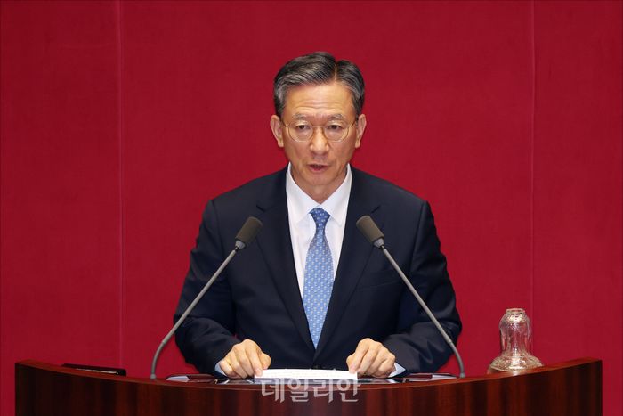 정성호 법무부 장관이 11일 오후 서울 여의도 국회 본청에서 열린 국회 본회의에서 '국회의원(권성동) 체포동의안'에 대한 제안설명을 하고 있다.
