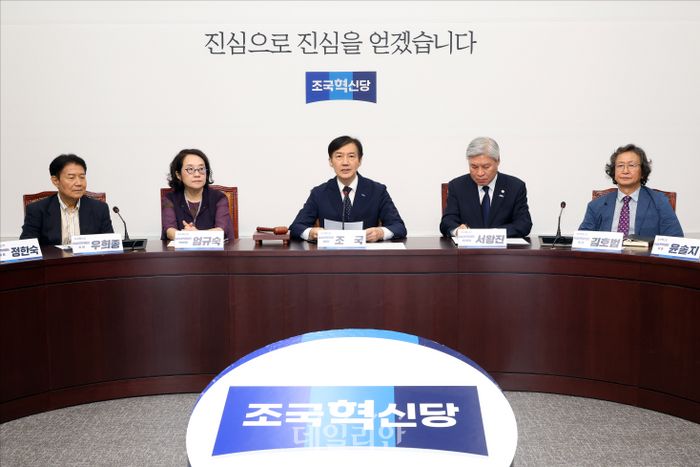 조국 조국혁신당 비상대책위원장이 지난 15일 오전 국회에서 열린 혁신당 비상대책위원회 제1차 회의에서 모두발언을 하고 있다. ⓒ데일리안 홍금표 기자