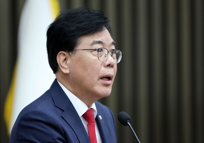 송언석 국민의힘 원내대표가 22일 오후 국회에서 열린 정책 의원총회에서 발언하고 있다. ⓒ뉴시스