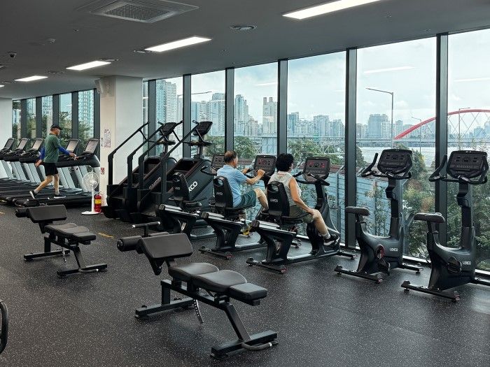 2층은 피트니스센터와 사우나가 있는 건강관리센터, 3층은 다목적실과 GX룸, 4층은 다목적 체육관으로, 주민이 한강을 바라보며 운동할 수 있는‘생활체육공간’이 마련됐다.