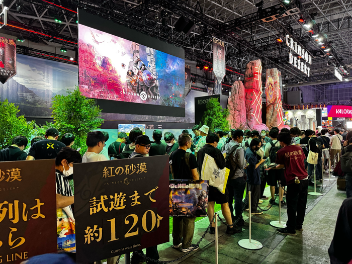 펄어비스는 현장에 단독 부스를 내고 100대 이상의 시연대를 마련, 도쿄게임쇼 기간 동안 붉은사막의 시연 기회를 제공하고 있다. 정식 출시 때 만나볼 수 있는 실물 패키지와 굿즈도 확인 가능하도록 진열했다.