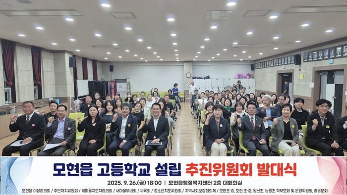 추진위원회는 정덕기 모현읍 이장협의회장을 위원장으로 선출하며 본격적인 활동에 들어갔다. 행사에는 용인시의회 김윤선 의원을 비롯해 김상수·황미상·박인철·박병민 의원, 이미영 모현읍장과 모현읍 7개 단체장, 모현 초·중학교 총동문회장, 6개교 학부모회장과 학교운영위원장 등이 함께해 힘을 보탰다.