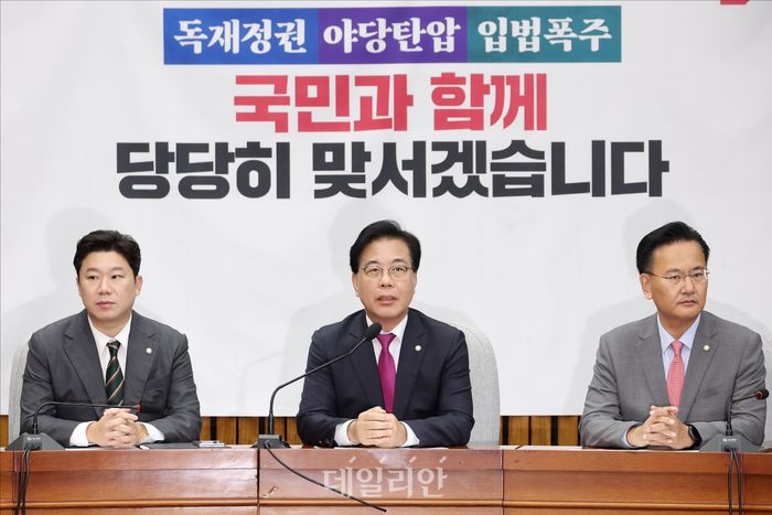송언석 국민의힘 원내대표가 1일 오전 서울 여의도 국회에서 열린 국민의힘 상임위원장 및 간사단 회의에서 발언을 하고 있다.
