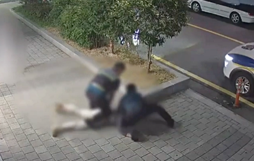 그러자 B경위가 A씨 목을 뒤에서 감아 바닥에 넘어뜨렸고, C경장이 A씨 위로 몸을 덮치며 무릎으로 머리와 목을 짓눌러 제압한 뒤 A씨의 양손에 수갑을 채워 연행했다. 이 장면은 근처 폐쇄회로(CC)TV에 고스란히 담겼다.