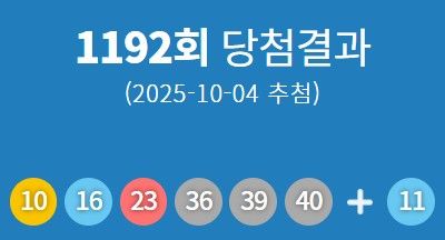 4일 동행복권은 제1192회 로또 당첨번호가 '10·16·23·36·39·40'번이라고 밝혔다. 보너스 번호는 11번이다.