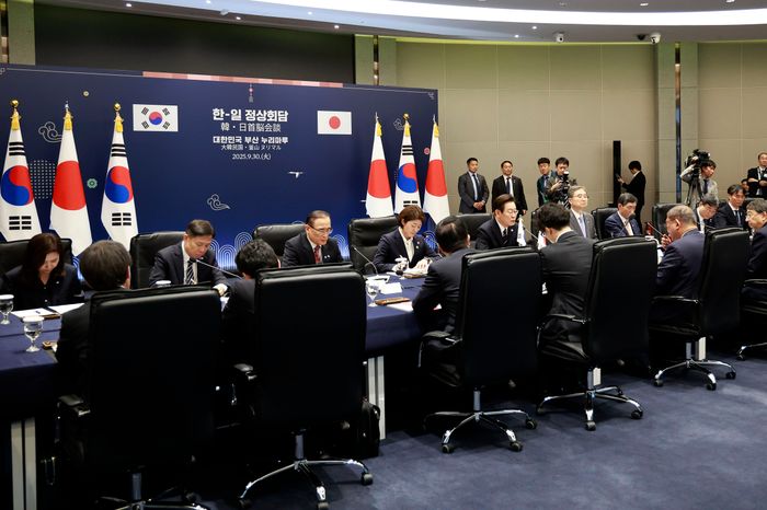 이재명 대통령과 이시바 시게루 일본 총리가 지난달 30일 부산 누리마루 APEC 하우스에서 한일 정상회담을 하고 있다. ⓒ뉴시스