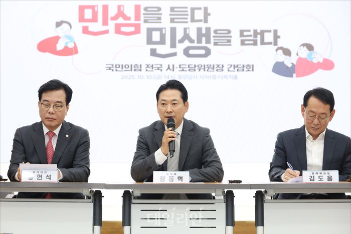 장동혁 국민의힘 대표가 10일 오후 서울 여의도 국민의힘 중앙당사에서 열린 '민심을 듣다 민생을 담다' 국민의힘 전국 시도당위원장 간담회에서 모두발언을 하고 있다.