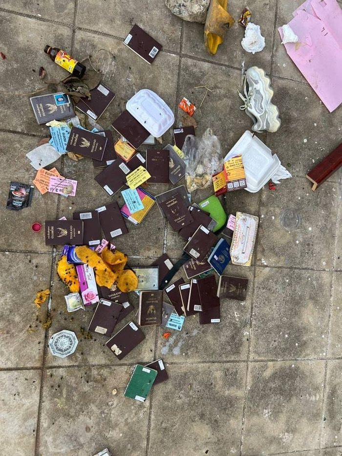 올해 초 촬영된 것으로 알려진 사진 속에는 태국, 대만 등 외국인 여권 수십개가 길거리에 널부러져 있다. 사진에서 태국 국적 여권이 가장 많았던 것으로 알려졌다.