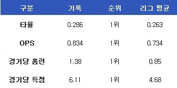 실제로 삼성은 이번 시즌 홈에서의 타율과 OPS가 각각 0.286, 0.834로 전체 1위에 올랐다. 이는 리그 평균인 0.263, 0.734보다 월등히 높은 수치다. 경기당 득점 또한 6.11점으로 나머지 9개 구단이 홈에서 뽑아낸 평균 점수(4.68점)보다 약 1.5점 더 얻어내 화끈한 타격을 과시했다.