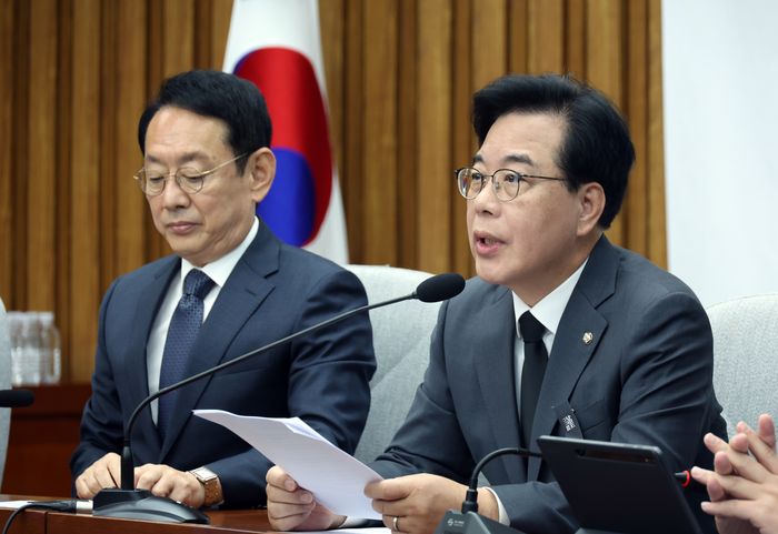 송언석 국민의힘 원내대표가 "민중기 특검이 양평군 공무원 극단 선택을 계기로 수사방식 전반을 재점검하겠다고 한다"며 "산후조리원 산모 압수수색 때까지도 문제의식을 느끼지 못하다 무고한 생명이 희생되고 나서야 재점검에 나선 것"이라고 질타했다.