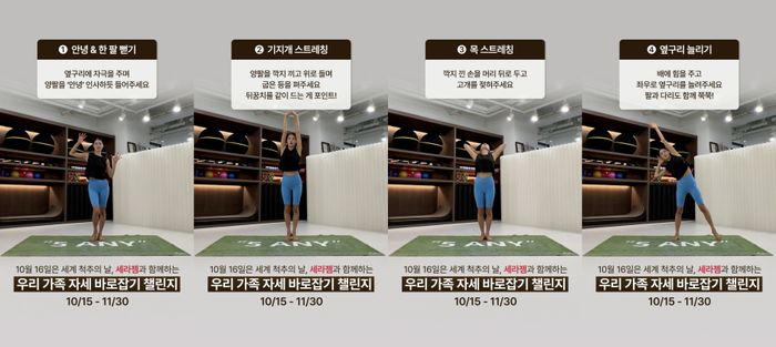 이번 챌린지를 위해 세라젬은 운동·스트레칭 전문 인플루언서이자 약 78만명의 유튜브 구독자를 보유한 강하나와 함께 ‘자세 바로잡기 스트레칭’ 영상을 제작했다.