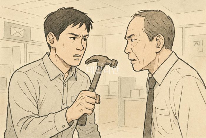A씨는 2023년 9월 경기도 한 우체국 1층에서 직장 선배 B씨에게 업무용 쇠망치를 집어 들고 "왜 나만 갖고 그러냐. 내가 만만하냐"며 협박한 혐의로 재판에 넘겨졌다. A씨는 화장실을 다녀온 뒤 자신에게 B씨가 자리 이탈 행위를 지적하자 "알아서 하겠다"고 했고 이어 B씨가 우편물 이송용 녹색 철제 카트를 밀며 다가오자 쇠망치를 들고 대치하며 언쟁한 것으로 조사됐다.