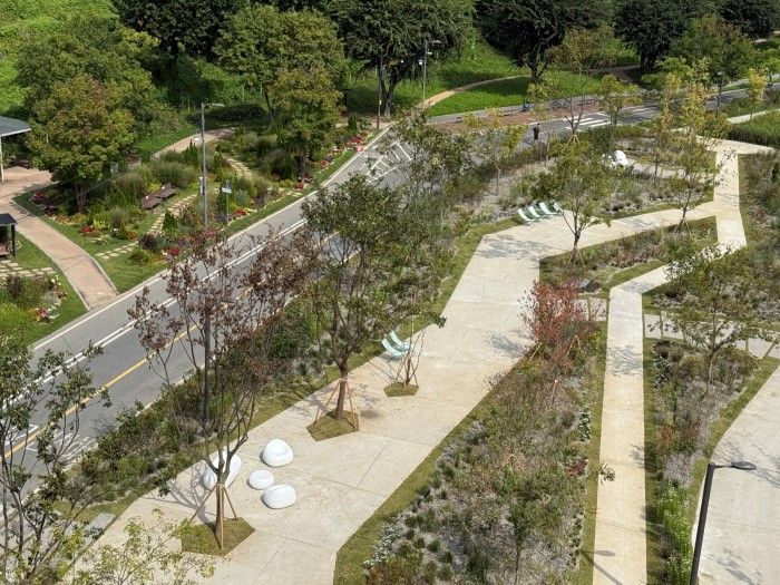 또한, 가을 정취를 느낄 수 있는 억새를 비롯해 팽나무, 낙상홍 등 수목과 에키네시아 등 다양한 색감의 야생화를 식재하여, 아름다운 녹지 풍경과 수변 공간이 어우러진 감각적인 쉼터로 재탄생되었다.