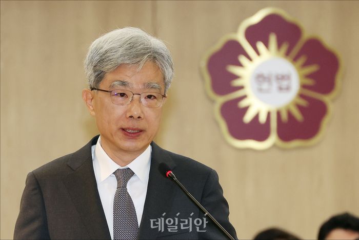 김상환 헌법재판소장이 17일 서울 종로구 헌법재판소에서 열린 국회 법제사법위원회의 헌법재판소에 대한 2025 국정감사에서 인사말을 하고 있다.