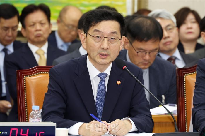 김성환 기후에너지환경부 장관이 14일 서울 여의도 국회에서 열린 기후에너지환경위원회 국정감사에서 질의에 답변하고 있다.