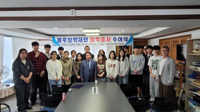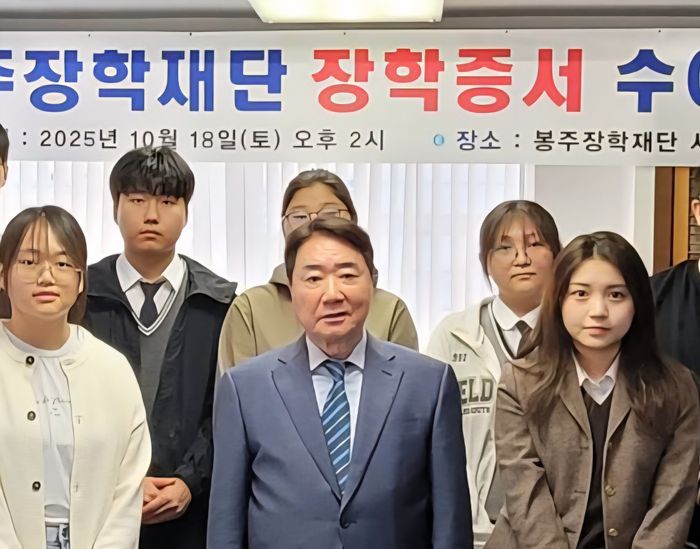 19일 정치권에 따르면 봉주장학회는 전날 경기 안양시 관양동의 장학회 사무실에서 제7차 장학증서 수여식을 거행했다. 경기도 관내 25개 고교에서 학교장이 추천한 장학생 36명이 재단으로부터 1800만원의 장학금을 수여받았다.