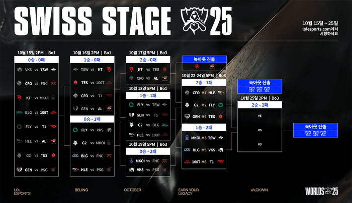 2025 리그 오브 레전드 월드 챔피언십(롤드컵)에서 LCK 3번 시드로 출전한 KT 롤스터가 전승 행진으로 가장 먼저 8강 진출을 확정지었다. 스위스 스테이지에서 단 한 세트도 내주지 않는 완벽한 경기력을 보여주며 이변의 중심에 섰다.